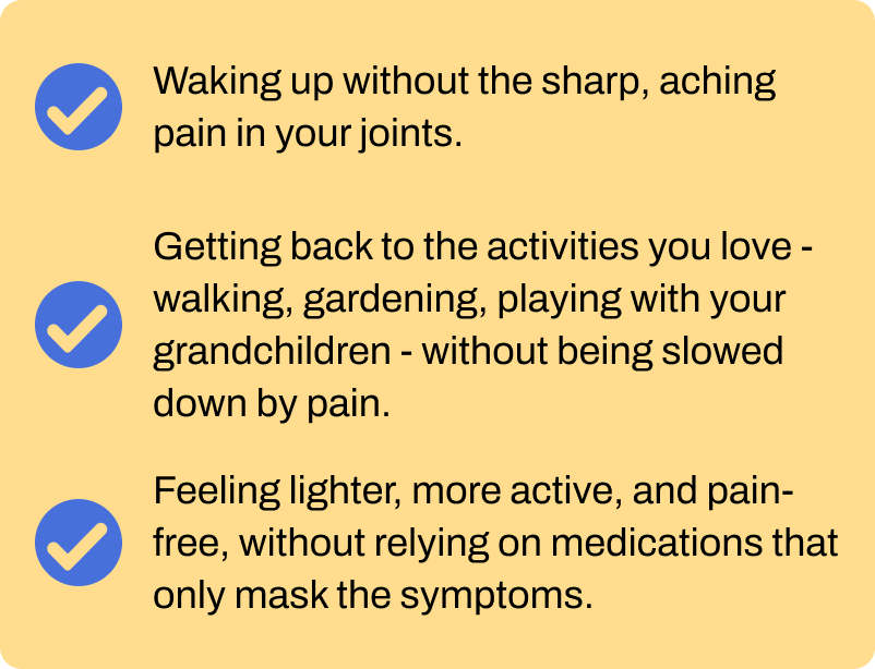 My joint pain was taking away everything I loved - gardening, taking walks, and even playing with my grandkids. Every time I sat down, I dreaded standing up again. It felt like my body was betraying me, and I started to believe that nothing could truly help.