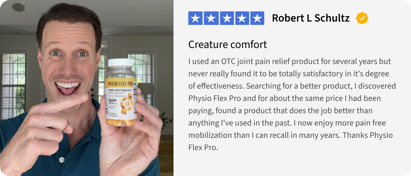 I used to run marathons, but joint pain forced me to slow down. After taking Physio Flex Pro for a month, my knees no longer hurt after my runs. I’m now back to my regular training schedule and feel stronger than ever.