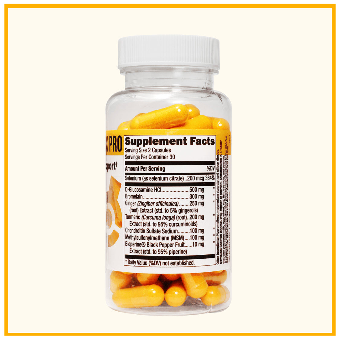 Physio Flex Pro uses 500mg of Glucosamine based on research that found glucosamine effective for the reduction of osteoarthritis symptoms and healthier function within joints.