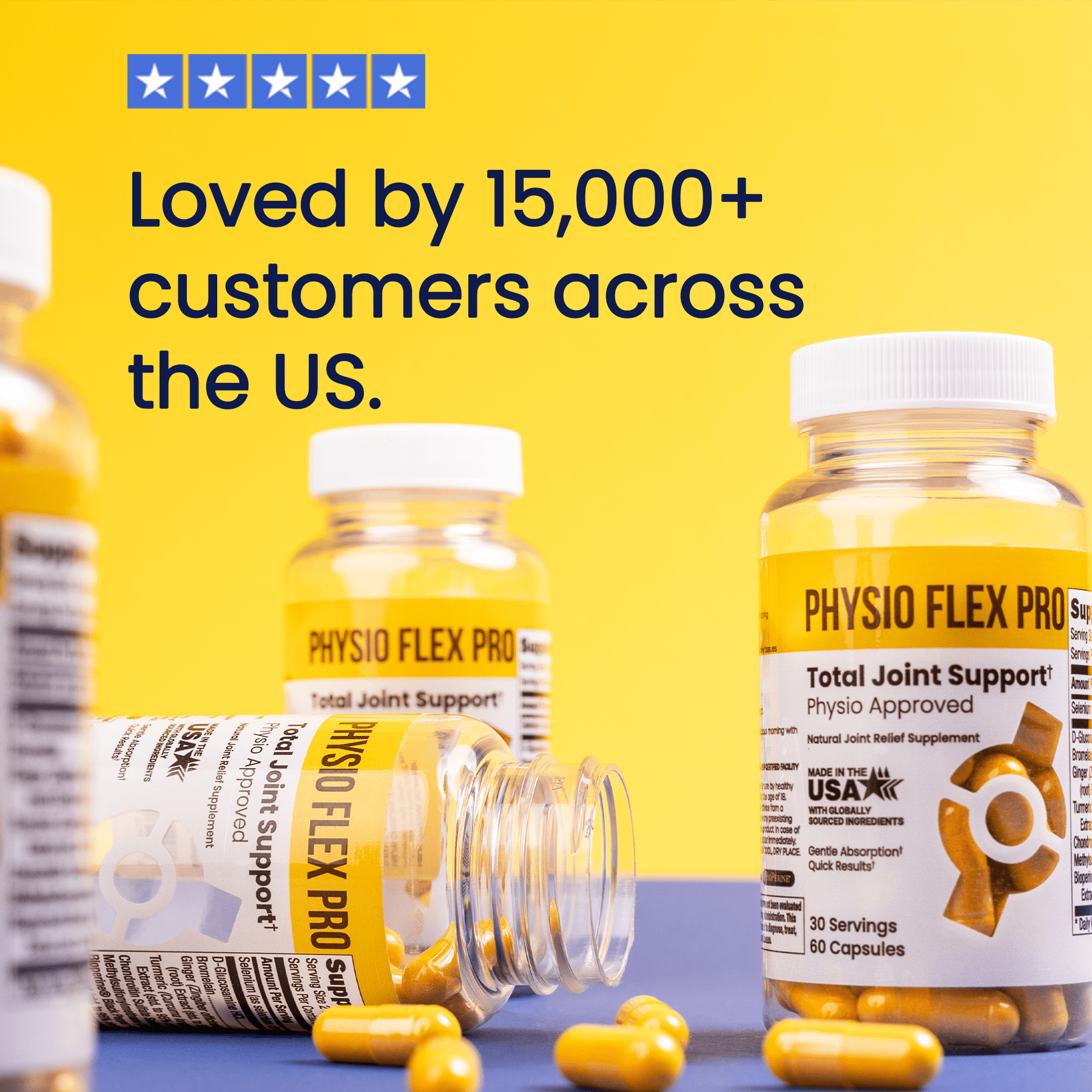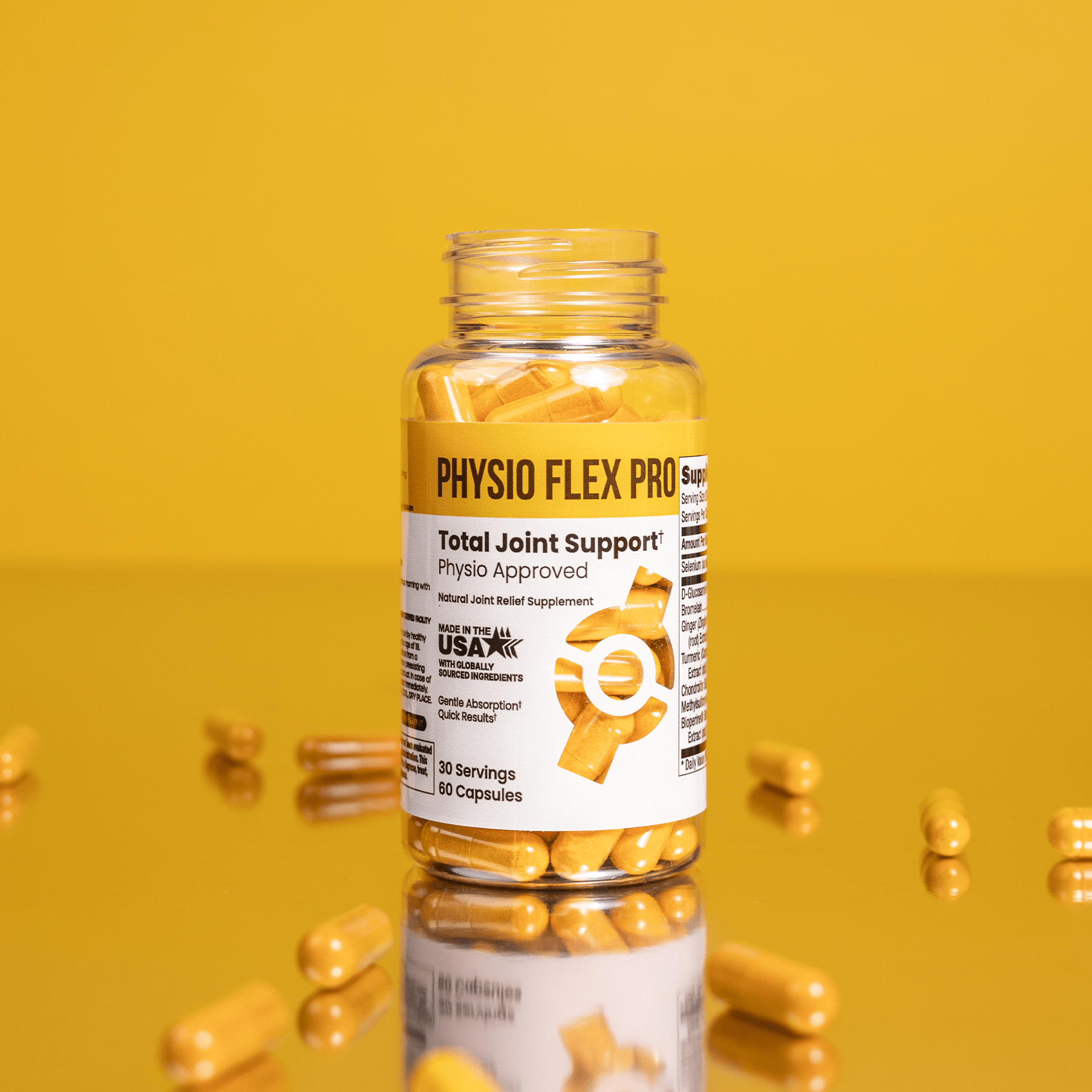Physio Flex Pro uses 500mg of Glucosamine based on research that found glucosamine effective for the reduction of osteoarthritis symptoms and healthier function within joints.